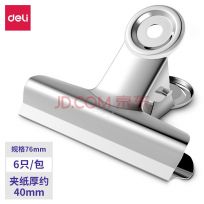 得力(deli) 不锈钢夹子大小号文件报夹圆形铁票夹文具办公用品画板票据夹 19MM/6只装 9526, 76mm/6只装 9521