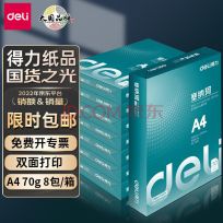 得力 复印纸 A4/70g塞纳河多功能双面打印纸木浆纸传真接收纸张光滑打印顺畅商务办公用品 7480 8包/4000张, 单包/500张