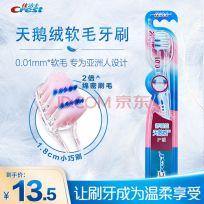 佳洁士(CREST)佳洁士天鹅绒软毛细毛牙刷成人双支装洁净牙齿家庭装男女情侣款 牙刷2支, 牙刷2支