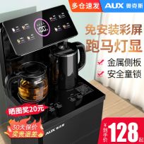 奥克斯立式智能饮水机家用下置水桶冷热多功能全自动桶装水茶吧机, 温热,【置杯靠背】金色+双出水口+遥控+显屏
