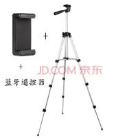 轻便携数码照相机微单三脚架手机拍照自拍支架摄像三角架 送夹子 黑色加蓝牙遥控, 银色